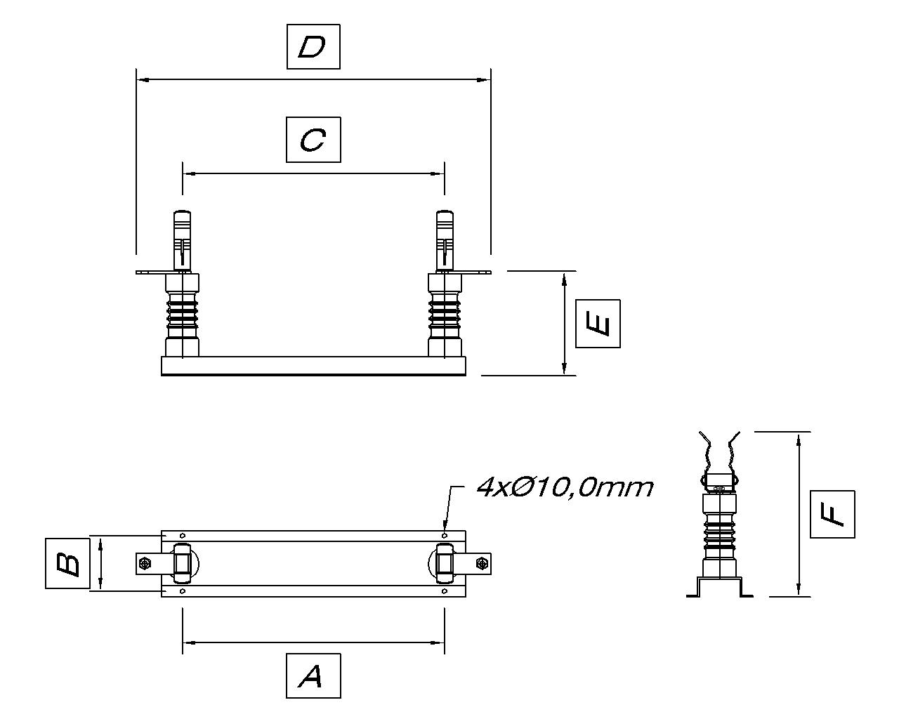 Base unipolar para fusível tipo HH de média tensão. Indicada para instalações abrigadas (uso interno) como: cabines primárias em alvenaria, painéis, etc. Construída em chassi de aço monobloco com tratamento contra corrosão e acabamento em epóxi por pintura eletrostática à pó. Montada com isoladores de epóxi de alta resistência mecânica e partes condutoras em cobre eletrolítico revestidas galvanicamente com estanho. Suas garras são mantidas sob pressão através de mola de tração, proporcionando uma elevada pressão de contato sobre o fusível, proporcionando baixa perda de energia por elevação de temperatura, pois garantem um excelente contato com baixa resistência ôhmica. Além disso devido a sua elevada pressão, estas garras suportam mais de três vezes o peso do fusível na posição mais desfavorável (base montada invertida, com fusíveis abaixo). Normas pertinentes: NBRIEC62271-102:2006, NBR8669.